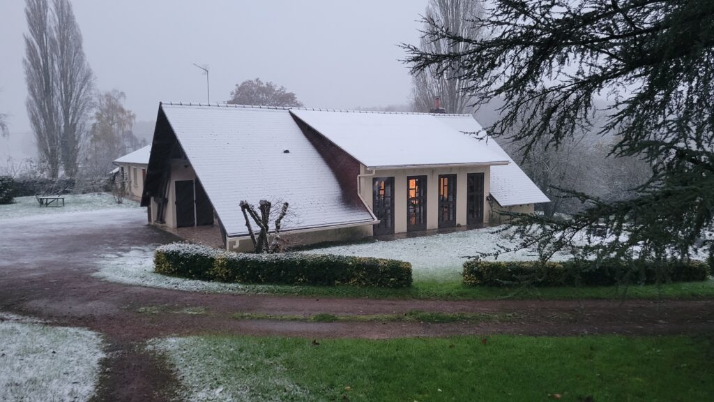 21 novembre 2024 : L’hiver est arrivé ! En ce jour de la Présentation au temple de la Vierge Marie, la Maison du Pain est toute belle sous son manteau blanc.